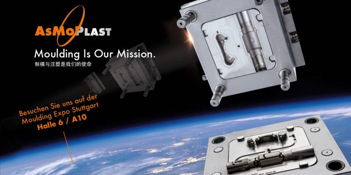 Aus dem Asmoplast Logo, das in seinem Look leicht an das NASA-Logo erinnert, entstand die Idee für „Moulding Is Our Mission“: als Motiv dienen blankpolierte Spritzgussformen, die in einem neuen ungewohnten Kontext gezeigt werden, nämlich im erdnahen Orbit. Damit entsteht der Eindruck von Raumschiffen.